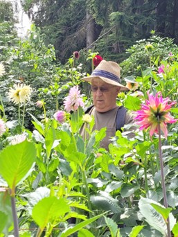 Wolodimir “Walt” Jacenko was born November 11,1948 in Hanover, Germany. His parents were Ukrainian and came from a long line of farmers. They may have even grown dahlias as he found a picture of his grandparents holding a bouquet of dahlias while going through photos a few years back. His parents were both prisoners of war in World War II and forced to work in a concentration camp. After the war they immigrated to Brazil when he was a baby.  He grew up on a small farm in Brazil. It was a very special place to him where he learned the art of growing all sorts of plants and fell in love with gardening.  At 10 years of age Walt’s family immigrated to Erie, PA and later moved to Ballard WA. After graduating from high school Walt was drafted into the army at 19 years of age and served in the Vietnam war. When he returned home, he met Linda, the love of his life and they were happily married for 53 wonderful years. They have 2 children, son (Jason), and daughter (Heather).
